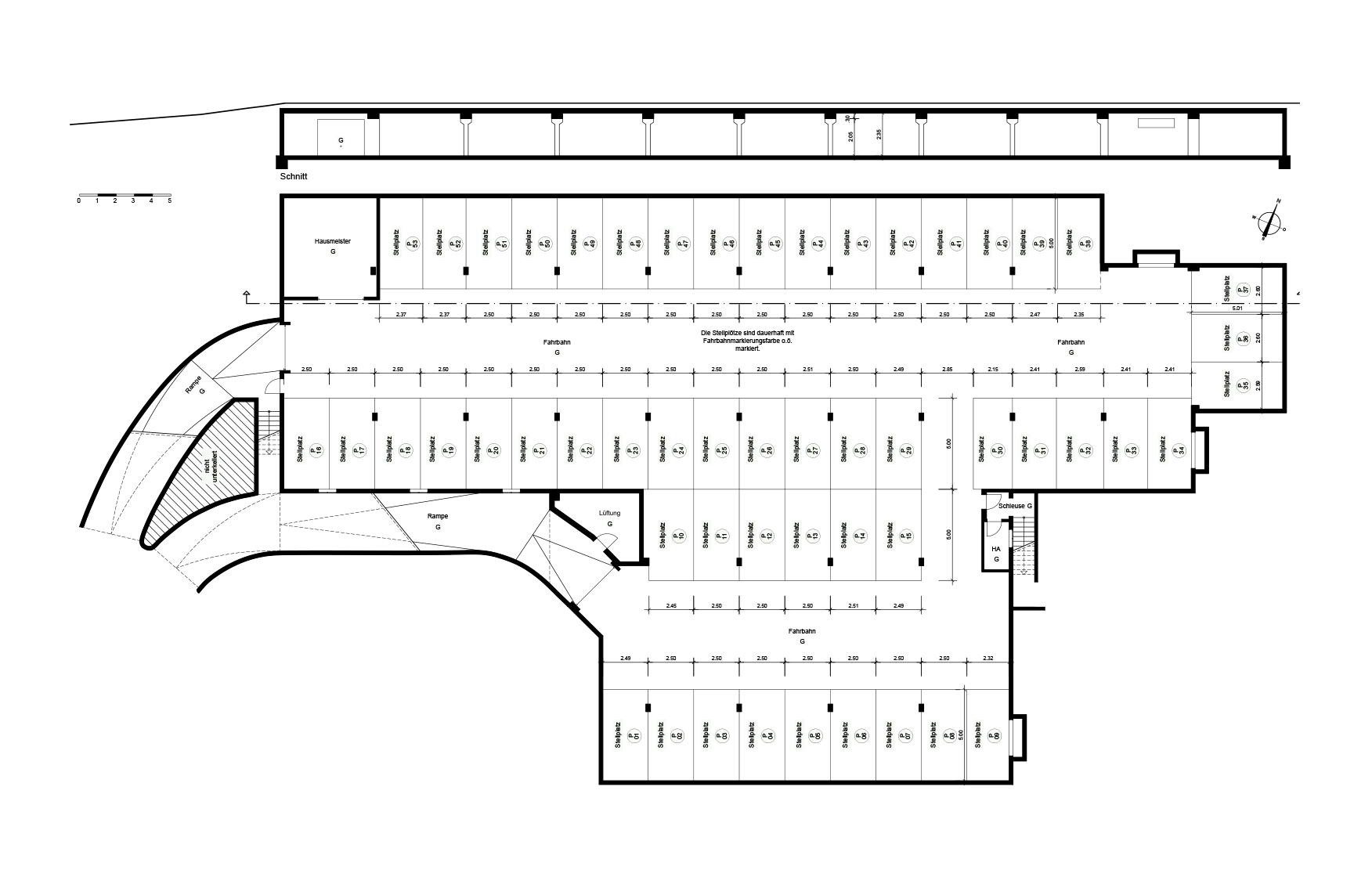 Der Grundriss der Tiefgarage